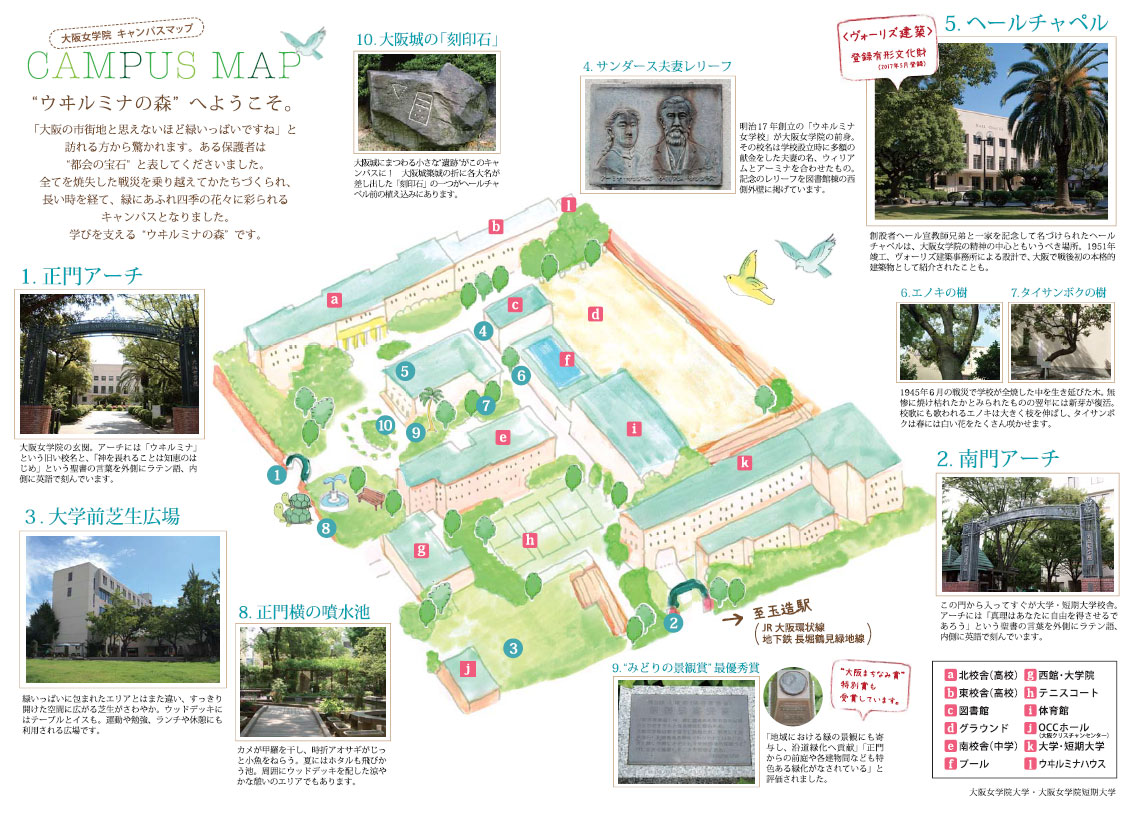 大阪女学院は、明治時代半ばに、発祥の川口外国人居留地からこの玉造の地に移り、ここで長い歴史をきざんできました。